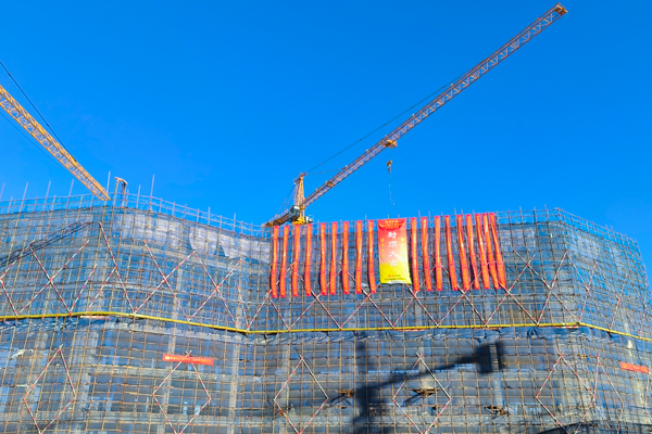 综合服务楼地下一层,地上六层,框架剪力墙结构,装配式为固模楼承板(TC板)水平构件,位于沧州市新华区海丰大道西侧、南绕城路北侧,建筑面积11111.7㎡。综合服务楼主体封顶标志着第三施工阶段(装饰装修)正式拉开序幕,也为下一步工作奠定了坚实基础。(七分公司)
